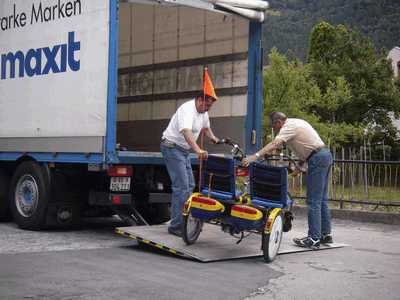 Rund 40 Spezialvelos stellte Tandem 91 am diesjährigen SlowUp Sierre-Sion Behinderten zur Verfügung. Für den Transport wurde ein Lastwagen eingesetzt, durch die Vermittlung von Mitgliedern brauchte Tandem 91 nur für die Miete aufzukommen, der Fahrer arbeitete kostenlos. Herzlichen Dank allen Helferinnen und Helfern für den Transport nach Siders und zurück!