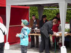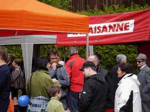 Anschliessend servierte Tandem 91 Apéro und ein Mittagessen bei der Garage von Tandem 91 (Kreuzstrasse 3). Aufgrund der unerwartet vielen Besucher ging das Mittagessen aus, zum Glück hatten wir noch Raclette bereit.
