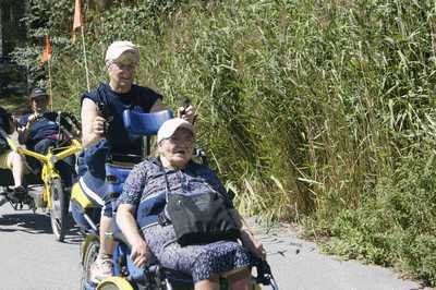 112 Behinderte und Senioren mit Helfern auf 26 Velos von Tandem 91 waren von Donnerstag bis Sonntag am Openair Gampel unterwegs. >>> Bericht Walliser Bote