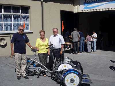 Nach dem Mittagessen konnte Tandem 91 ein neues Spezialvelo in Empfang nehmen, dieses wurde von den Gründern der Stiftung „Denk an mich“, Jeanette und Martin Plattner, überreicht. Herr Plattner dankte bei der Übergabe Tandem 91 für den Einsatz für Behinderte und wies darauf hin, dass Freiwilligenarbeit einen wichtigen Teil in unserer Gesellschaft darstellt: Entgegen den überwiegenden negativen Meldungen und Skandale in der Presse gibt es viel Positives, über das wenig berichtet wird, wie die vielen Menschen in der Schweiz, die sich unentgeltlich für andere einsetzen.