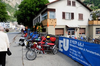 Anschliessend Apero, Mittagessen und gemütliches Zusammensein den ganzen Nachmittag bei Tandem 91, Bahnhofstrasse 15 in Steg. Während des Nachmittags können Testfahrten mit den Spezialvelos unternommen werden.