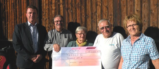CSPO Präsident Valentin Cina konnte einen Check über 1'000 Franken an den Präsidenten der Stiftung Tandem 91, Heinrich Zengaffinen sowie die Vereinsmitglieder Marie-Therese Locher und Amandus Meichtry übergeben. Zugleich wurde CSP Oberwallis ein Mitglied des Vereins Tandem 91, um diesen jährlich mit dem Mitgliederbeitrag zu unterstützen.